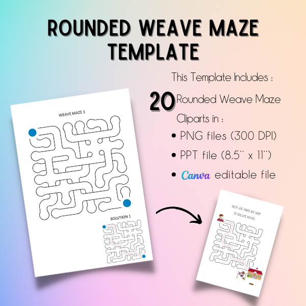 40 Round Weave Mazes (including solutions) in PNG/PPT/editable Canva