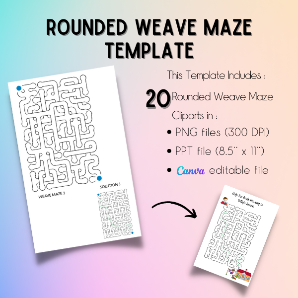 40 Round Weave Mazes (including solutions) in PNG/PPT/editable Canva